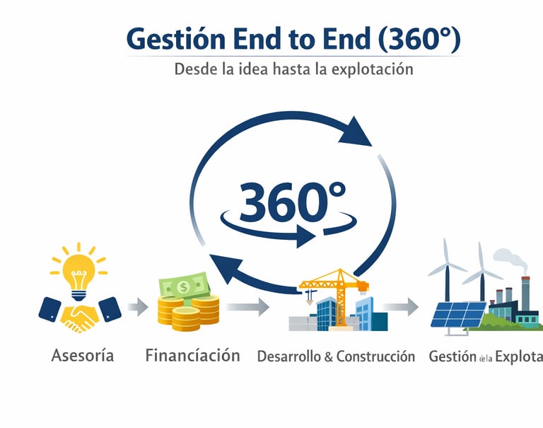 Desde la idea hasta la explotación. Asesoría, búsqueda de financiación, desarrollo, construcción y gestión de la explotación.